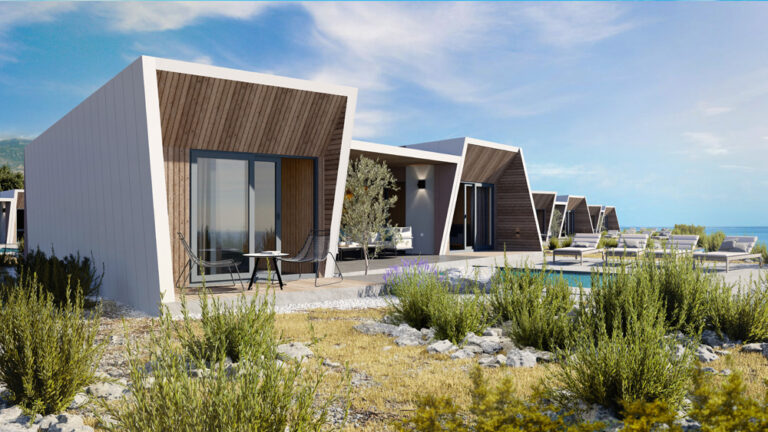 • skvěle navržené glampingové vily a prázdninové domy s bazény